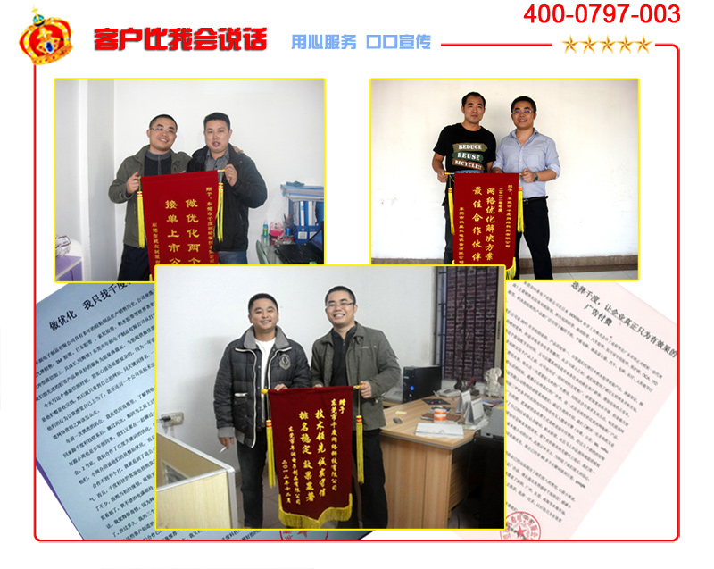 我們有15年的網絡推廣經驗,為1027家企業提供網絡營銷服務! 我們是致力于做廣東效果更好的網絡推廣外包服務商。 我們有自主核心技術,讓廣東數百萬中小企業只為有效果的網站付費! 我們提供短視頻矩陣關鍵詞優化、短視頻運營、SEO優化、網站建設等網絡營銷外包服務。 我們的客戶遍布東莞、廣州、深圳、佛山、江西、山西、廣西……更多+