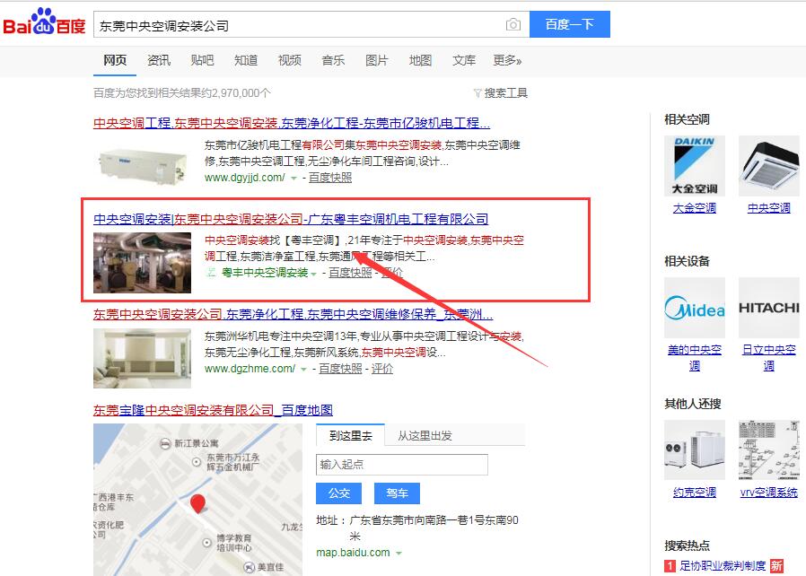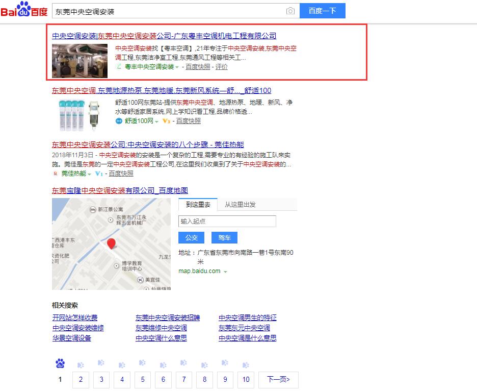 東莞中央空調首頁穩定排名,企業網絡營銷斬獲80w訂單;中央空調安裝排名也上到第一頁,更多網絡效果期待中。