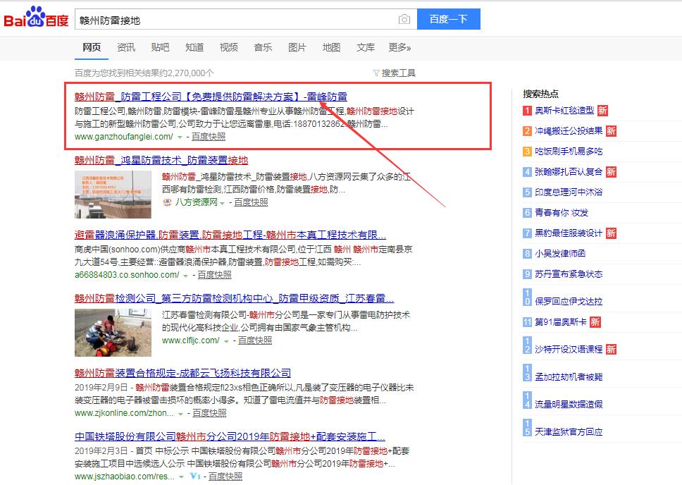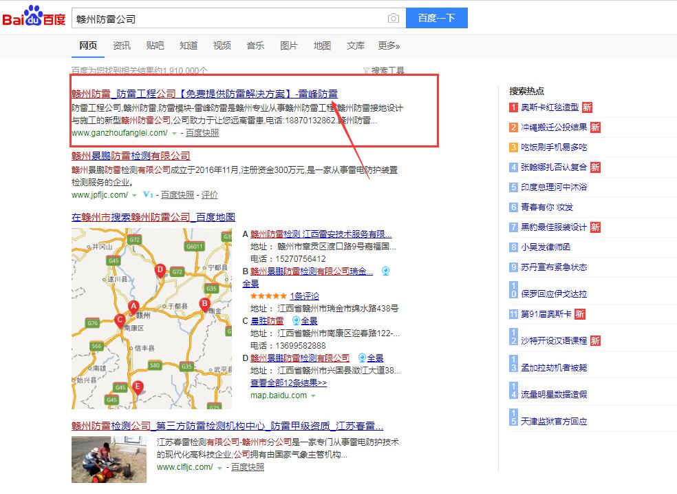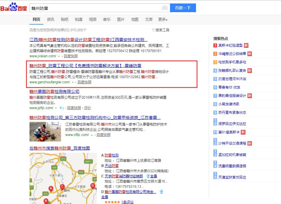 贛州雷峰防雷是專注本地廠房防雷,樓盤建筑防雷及各類大型設備及公共設施防雷工程的本地服務商。是本地較早使用網絡推廣的工程公司。跟千度網絡合作第8年了,核心關鍵詞贛州防雷,贛州防雷公司,贛州防雷工程,贛州防雷接地等核心關鍵詞常年穩定百度首頁前三位,部分關鍵詞八年來穩定首頁第一位。目前業務主要遍布贛州18個市縣。