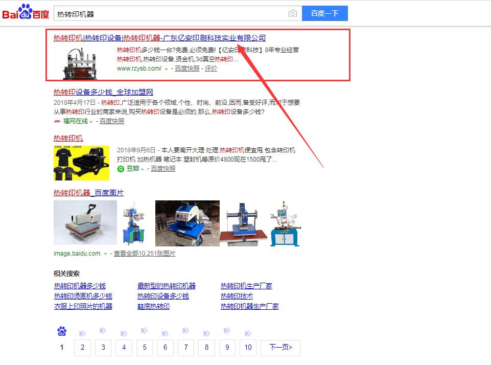 熱轉印機排名百度首頁前三穩定排名3年,產品設備遠銷東南亞20多個國家和地區。